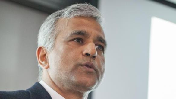 Professor Sunil Agrawal discussed his research in using robots to aid in physical therapy and rehabilitation. Photo by Timothy Lee Photographers.