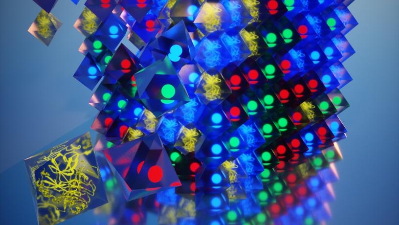 “One of the major reasons why SA is not a technique of choice for practical applications is that the same SA process cannot be applied across a broad range of materials to create identical 3-D ordered arrays from different nanocomponents,” explained corresponding author Oleg Gang, leader of the Soft and Bio Nanomaterials Group at the Center for Functional Nanomaterials (CFN)—a U.S. Department of Energy (DOE) Office of Science User Facility at Brookhaven National Laboratory—and a professor of Chemical Engineering and of Applied Physics and Materials Science at Columbia Engineering. “Here, we decoupled the SA process from material properties by designing rigid polyhedral DNA frames that can encapsulate various inorganic or organic nano-objects, including metals, semiconductors, and even proteins and enzymes.”