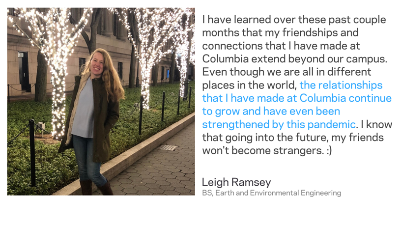 Graduation is just one of the many achievements of our committed and engaged students. They are scholars, researchers, athletes, and volunteers. Through their studies and activities, they have pursued excellence here at Columbia, across New York City, and around the world, pursuing our guiding vision to be Columbia engineers for humanity.